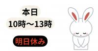 27日(木)17時~ラスト22時。 28日(金)17時~ラスト22時。 1日(月)17時~ラスト22時。 2日(火)17時~ラスト22時。 4日(木)17時~ラスト22時。 5日(金)17時~ラスト22時。
